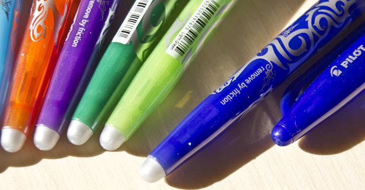 Im Grunde genommen sind die Frixion Kugelschreiber wie andere normale Gelkugelschreiber . Die Eine seite von dem ist blau und die andere rot-braun.